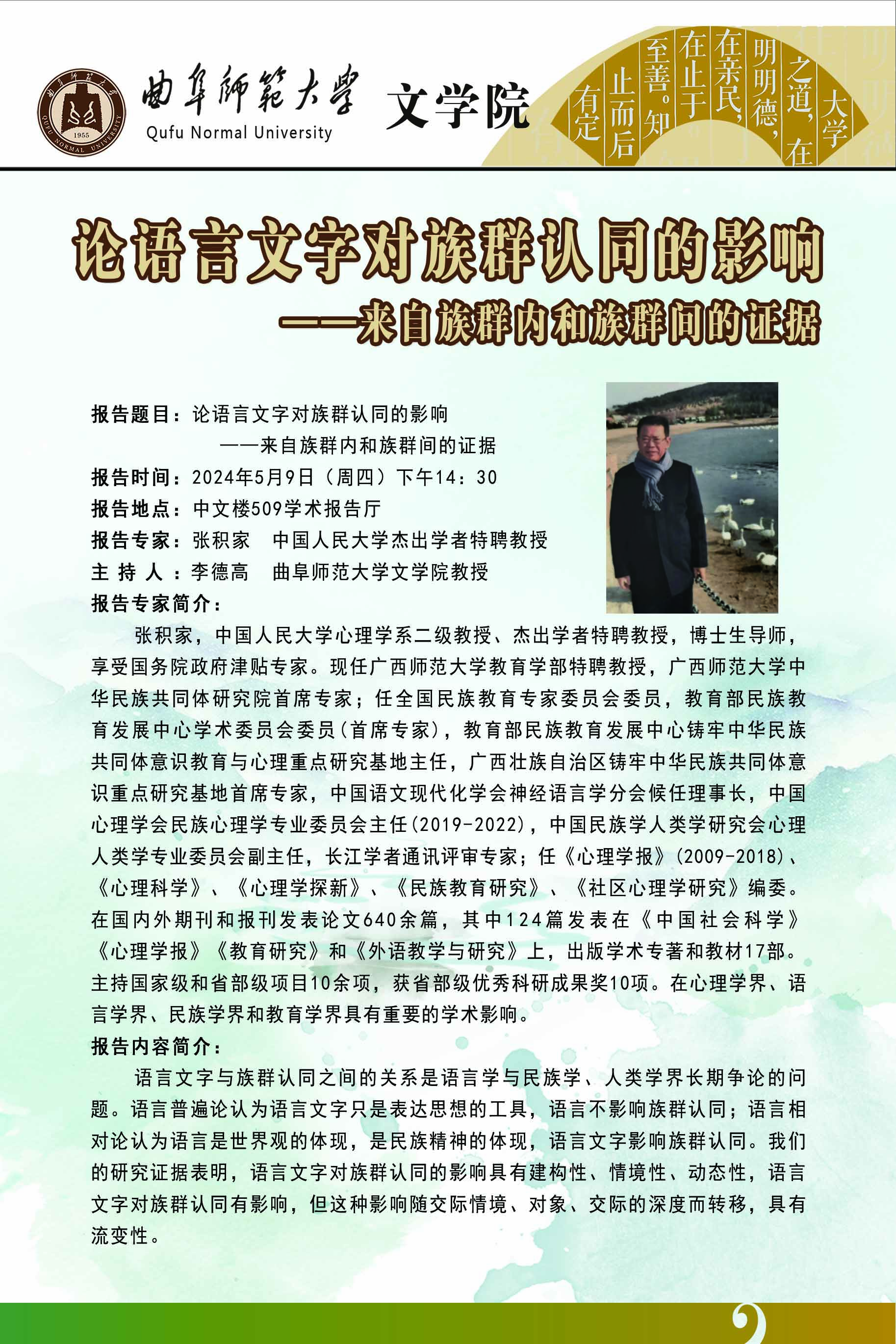 学术报告预告|论语言文字对族群认同的影响——来自族群内和族群间的证据