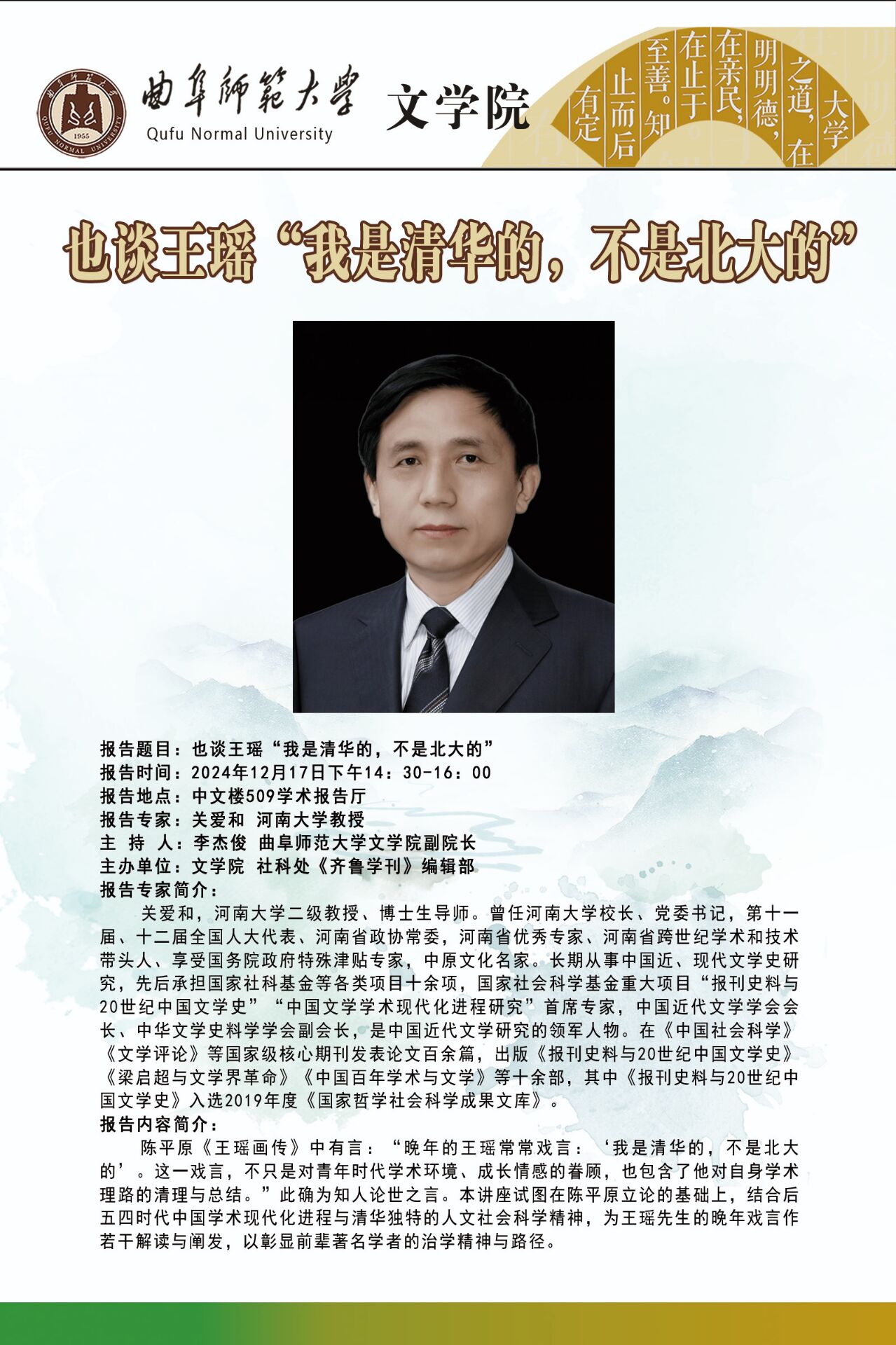 学术报告预告|也谈王瑶“我是清华的,不是北大的”