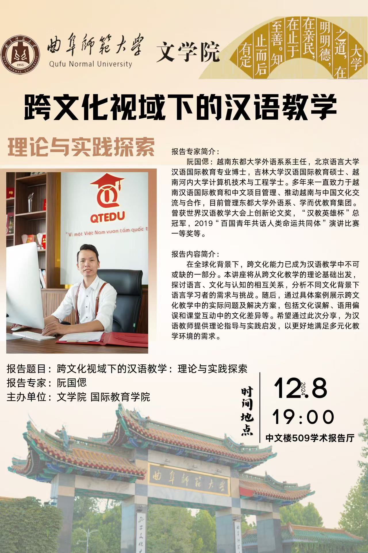 学术报告预告|跨文化视域下的汉语教学:理论与实践探索