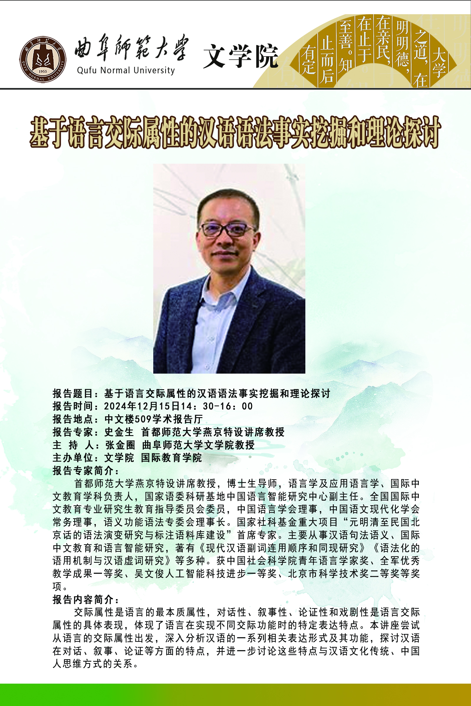 学术报告|基于语言交际属性的汉语语法事实挖掘和理论探讨