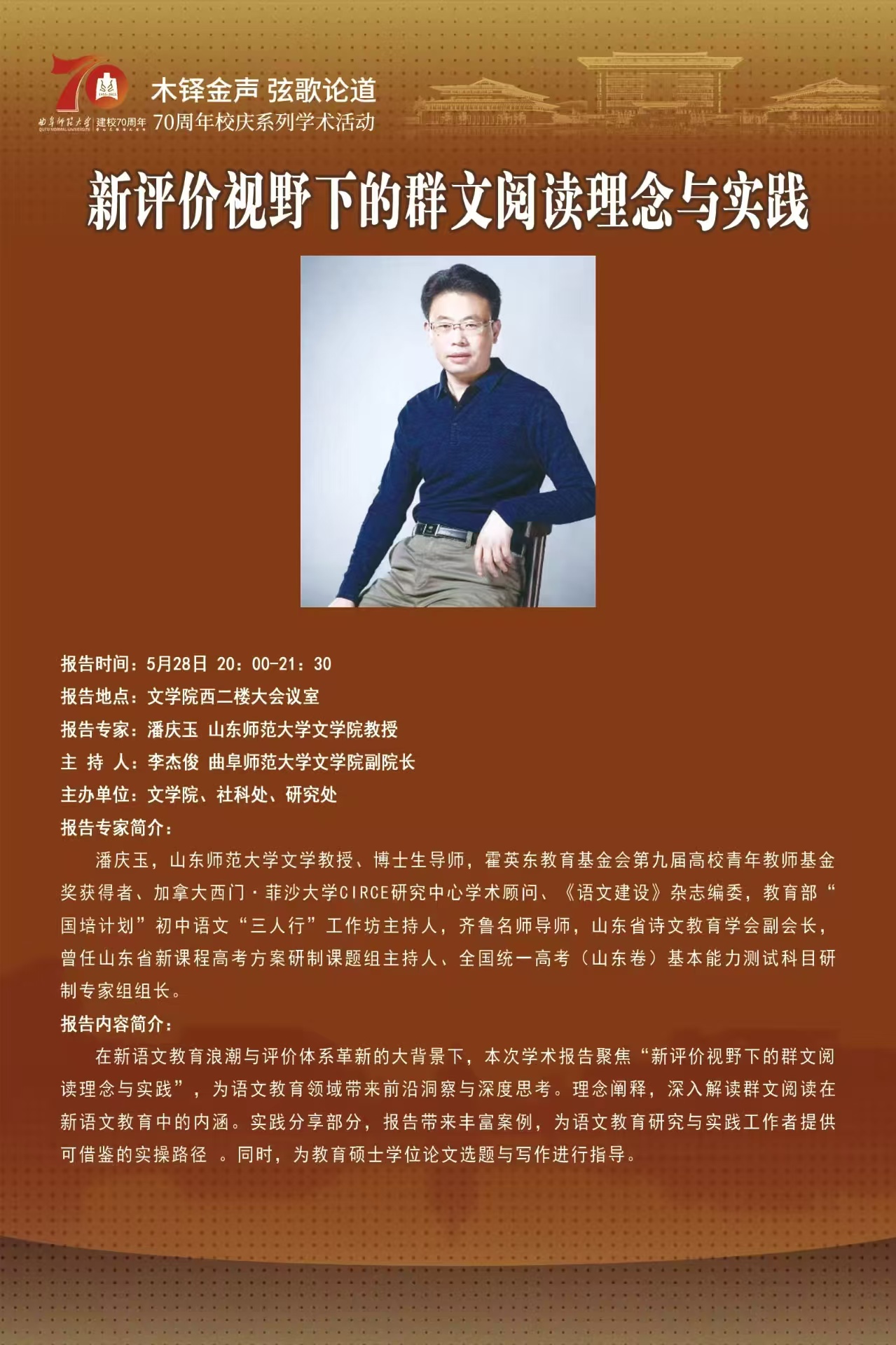 70周年校庆系列学术报告|新评价视野下的群文阅读理念与实践