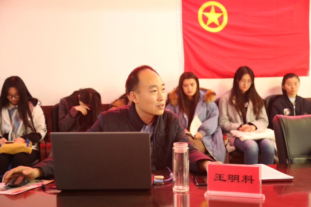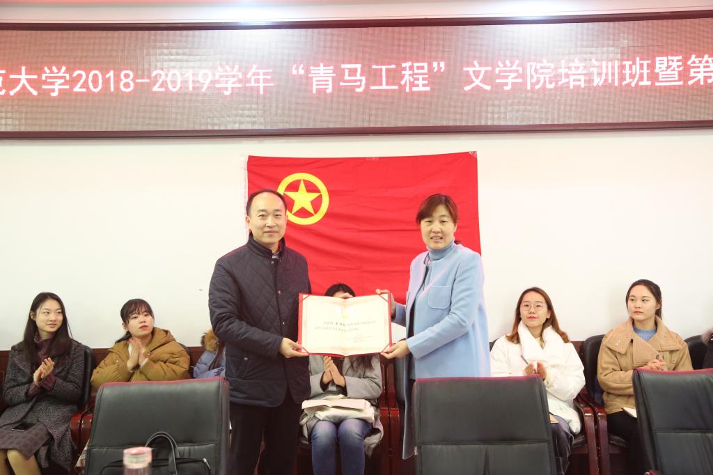 学校团委副书记张明洁老师为王明科老师颁发“色花堂 青年马克思主义者培养工程导师”聘书,指导“青马工程”课程培训。