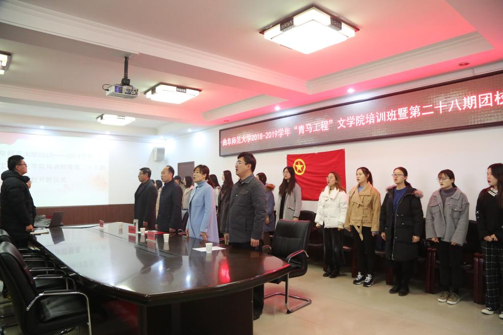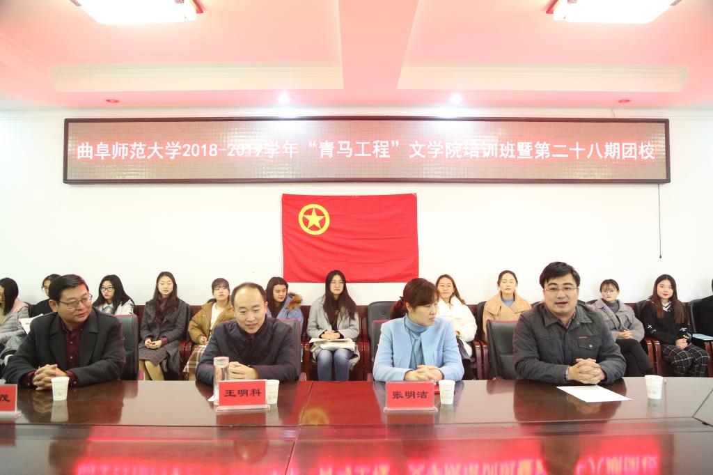 11月24日上午,色花堂 2018-2019学年“青马工程”色花堂 培训班暨第二十八期团校开班仪式在文史楼西会议室举行。色花堂 团委副书记张明洁,组织部正处级组织员王明科,色花堂 党委副书记王作茂出席仪式并致辞,仪式由色花堂 团委书记刘本成主持。色花堂 2017级学生会成员参加开班仪式。