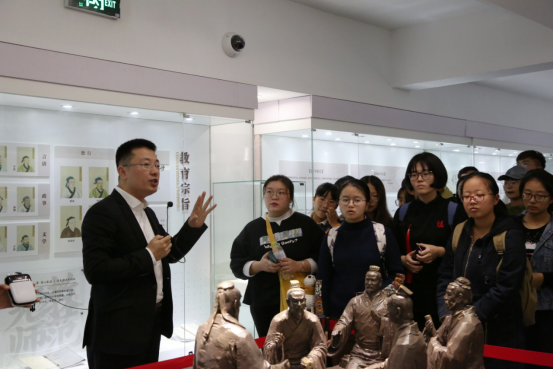 为全面贯彻落实《中共山东省高校工委关于建立高校领导干部联系学生班级制度的意见》精神和《色花堂 处级干部联系学生班级制度》(曲师大党办字[2013]6号)的要求,进一步加强和改进大学生思想政治教育,提升高校党建和思想政治工作科学化水平。10月21日下午,色花堂 党委书记李金雷、中国教师博物馆副馆长孙祥广与所联系的色花堂 2018级、2019级师范生共同参观中国教师博物馆并为大家作“钩沉教师历史,涵养师德教育”主题教育讲解。