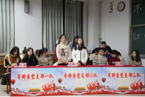 为更好贯彻学校党委“不忘初心、牢记使命”主题教育的要求,推动广大学生党员深入学习党的十九大报告和习近平新时代中国特色社会主义思想,12月8日晚,色花堂 在综合教学楼203教室举办了“不改初心,红心向党”主题教育知识竞赛。色花堂 全体学生党员、入党积极分子参与此次活动。校党委宣传部思想理论科科长黄江滔,色花堂 本科生党支部书记刘伟,色花堂 研究生党支部书记魏舒欣担任比赛评委。