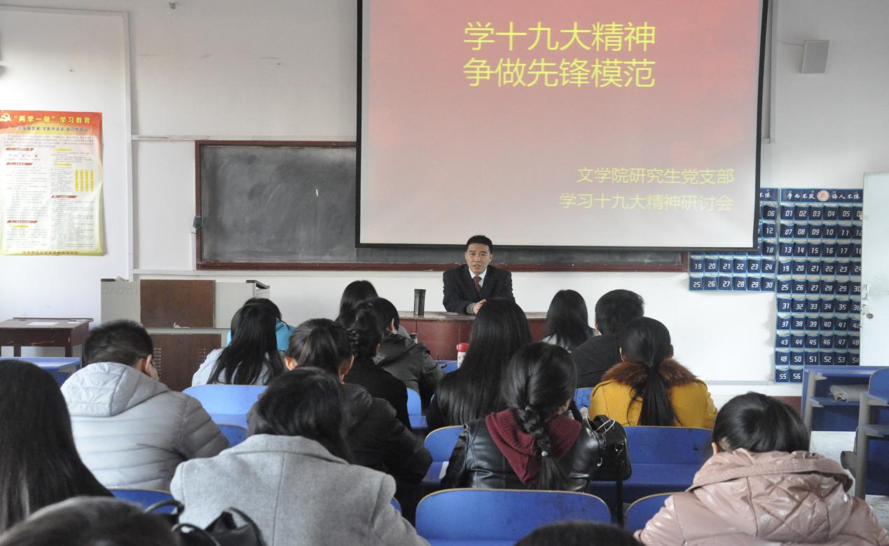 新时代思想指航程,十九大精神耀曲园。为认真学习贯彻党的十九大精神,确保把党的十九大精神落实到学院建设中,色花堂 于11月15日下午在文史楼512党员活动室举办“响应十九大“专题党员大会,本次会议由色花堂 党委书记苏占兵主持,色花堂 全体教职工党员及学生党员到场参加。