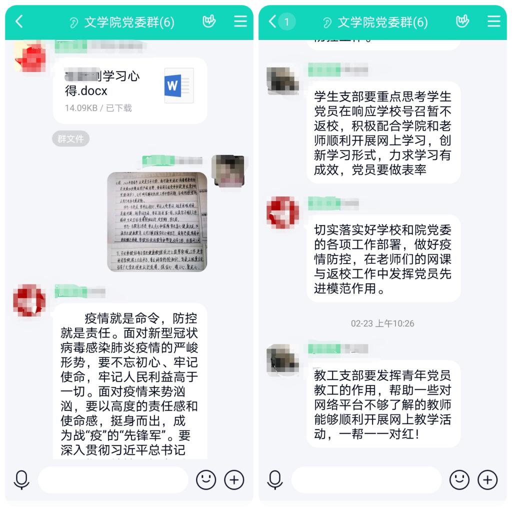 中心组成员认真研读了中共中央组织部、济宁市委组织部和学校党委组织部下发的关于在疫情防控工作中充分发挥党组织战斗堡垒作用和党员先锋模范作用的三个重要通知,以文字形式发表了学习心得和体会。