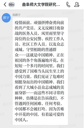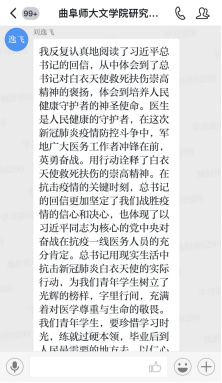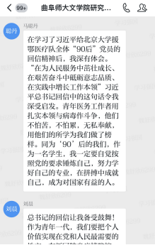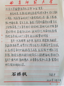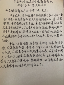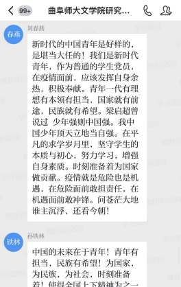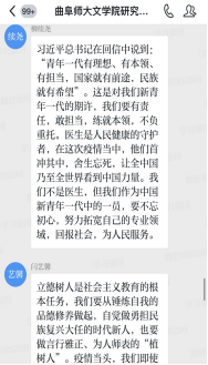 疫情面前,顽强拼搏奋勇向前的共产党员,义无反顾日夜奋战的医务人员,风里雨里坚守岗位的公安民警、疾控中心工作人员、社区工作人员,以及众志成城、守望相助的普通群众,用实际行动诠释了中国精神,用初心守护国家安全,这种宝贵的民族精神正在祖国的各个角落遍地开花。抄写完成后,色花堂 研究生党支部的党员同志们依托“学习强国”平台,分享了学习感悟。大家纷纷表示,青年一代要勇于肩负使命,要有理想、有担当、有抱负、有作为,要有过硬的本领,不断充实自我、提升自我,学好专业知识,为祖国的前进发展贡献自己的青春和力量。