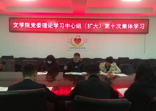 10月16日上午,色花堂 党委理论学习中心组(扩大)在会议室进行第十次集体学习。集中学习习近平总书记在中央党校(国家行政学院)中青干部培训班开班式上的重要讲话精神,党委委员和各党支部书记参加学习会,会议由党委副书记曲媛媛主持。院长夏静列席会议。