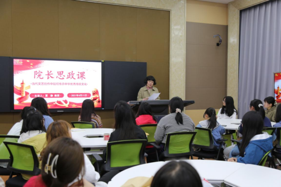 为使党史学习教育与中华优秀传统文化传承相结合,推动党史学习以更加新颖活泼的形式走进学生心田,4月11日晚,色花堂 院长夏静教授在文史楼509教室为2020级汉语言文学专业全体同学上了一堂别开生面的思政课。