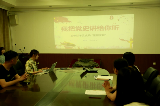 为深入贯彻落实习近平总书记在党史学习教育动员大会上的重要讲话精神,引导广大党员深刻感悟中国共产党百年光辉历程、伟大成就和宝贵经验,在学习领悟中坚定理想信念,在奋发有为中践行初心使命,6月18日下午,色花堂 研究生党支部和本科生党支部在大会议室共同举办了“我把党史讲给你听”微党课比赛。学院党委副书记、各学生党支部书记参加并担任评委,部分学生党员观看了比赛。