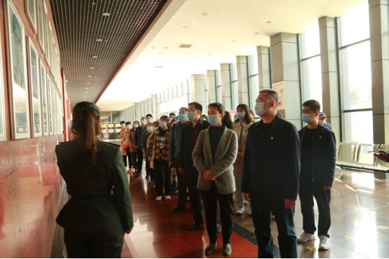 学史明理,致敬革命先烈,接受红色精神洗礼,坚定理想信念。党委理论学习中心组成员首先参观了革命烈士纪念塔和烈士公墓,大家在一幅幅珍贵的历史图片、一段段动人的文字资料前久久驻足,神情肃穆,纷纷以深深的鞠躬表达对烈士们崇高的敬意。随后,面对鲜艳的党旗,重温入党誓词。一句句铿锵有力的话语,传递出党员们在红色精神洗礼下展现出的坚定信念。最后,大家对纪念馆进行细致参观。在王杰纪念馆,中心组成员们认真聆听了讲解员对一张张记录峥嵘岁月的图片、一件件珍贵的历史实物、一段段悲壮的历史故事的详细介绍,感触颇深,内心更加坚定作为一名共产党人的信念。