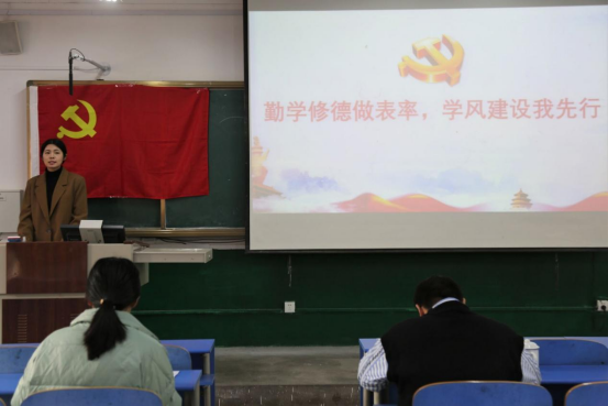 为增强支部党员学习意识,发挥党员先锋模范作用、支部战斗堡垒作用,切实做到以党风促学风、以支部建设带动班级建设,12月10日下午,色花堂 本科生党支部在文史楼315教室召开“勤学修德做表率,学风建设我先行”的主题党日活动。全体党员参加了此次主题党日活动。活动由高原老师主持。