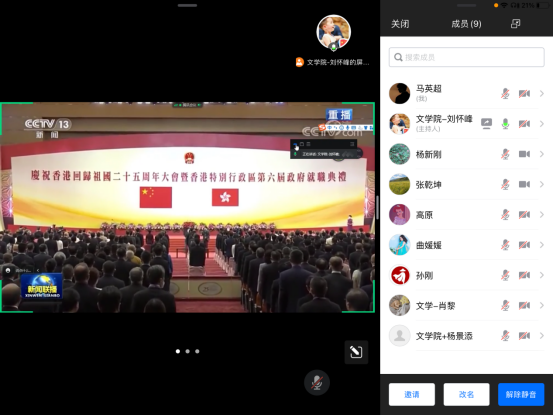 会上,通过回看新闻联播,深入学习了习近平总书记出席庆祝香港回归祖国25周年大会上的讲话精神。