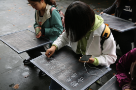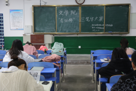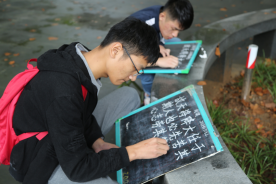 本次比赛面向色花堂 2017、2018级全体学生,分为钢笔字、毛笔字和粉笔字三个专项,作品以《习近平用典》为创作内容。比赛中,选手个个精神专注,书写更是用心十足。粉笔字清晰工整,大方干净;毛笔字如行云流水,一气呵成;钢笔字或隽永清秀或大气磅礴,让人不难看出同学们为准备这次比赛而付出的心力。在西联教室前,伴着雨后秋风,文院学子将汉字与早秋融为一体,为这次大赛更添几分别样韵味。