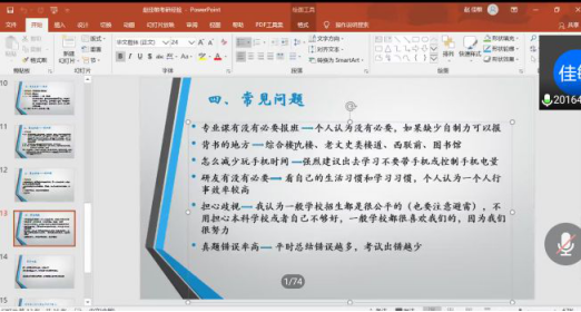 赵佳敏师姐从院校选择、资料选择、复习方法、常见问题这四个方面出发,系统的介绍了她的备考过程。在总结了自身的备考经验后,她向同学们提出三点宝贵建议:“做出正确的选择”、“对自己有信心”、“坚定目标”,激励同学们要排除干扰因素,提高学习效率,做到有计划、有目的的复习,锲而不舍、砥砺前行,才能一战成“硕”。