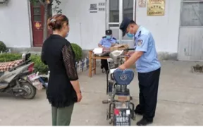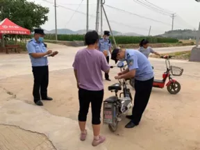 图为山东省泰安市东平县公安局王警官在基层流动挂牌点为群众办理挂牌工作(李文慧供图)