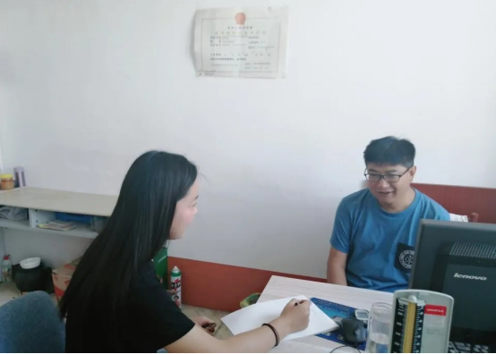 图为谢涵与当地基层医生党员交谈及该党员的工作地点