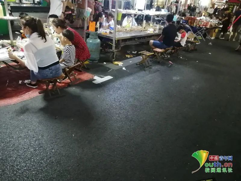 图为小分队在青岛市拍摄摆夜市地摊存在垃圾现象