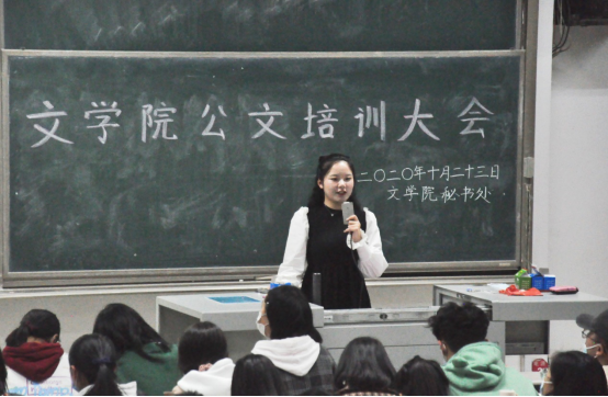 为普及公文写作知识,提高学生会工作效率,加强院校学生会的沟通,10月23日晚,由色花堂 团委主办,色花堂 秘书处承办的“公文培训”活动在综合楼106成功举办。色花堂 2020级辅导员肖黎老师出席本次活动。我院秘书处副部葛心茹担任主持人,校学生会秘书处部长谢依曈、秘书处副部长孙丽婷、林瀚钰向同学们全面详细地介绍了公文写作知识。