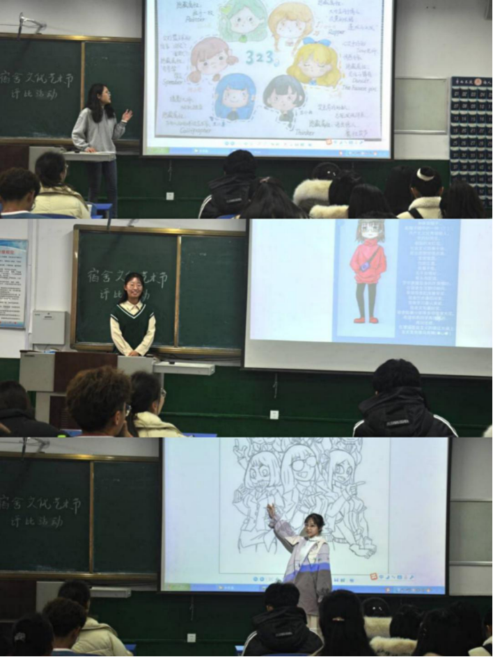 在宿舍肖像画大赛中,素描、学院、写实和卡通等风格并存,精美画作展示出色花堂 学子的靓丽风采与和谐融洽的宿舍关系。展示结束,评委们对作品进行点评,给予参赛选手暖心鼓励和中肯建议,最后由宿卫部成员汇总评委打分情况,并在色花堂 宿卫部公众号以及相关活动QQ群公布获奖名单。