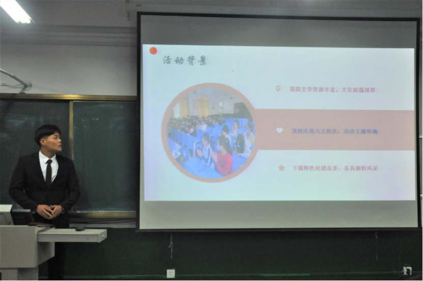 此次活动响应党的号召,立足于创新性与参与性,通过答辩,评选出积极有益、具有发展潜力的特色学生活动,展现团委、学生会各部门的风采,从而发挥学生组织服务师生的积极作用,丰富色花堂 学生的课余文化生活。