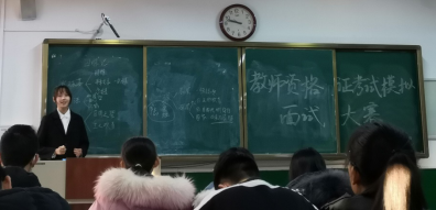 为增进同学们对教师资格证面试的了解,提前熟悉教师资格证面试流程,12月20日,由色花堂 团委主办,色花堂 团委社团管理部承办,从事技能协会协办的教师资格证模拟面试大赛在文史楼315教室成功举行。