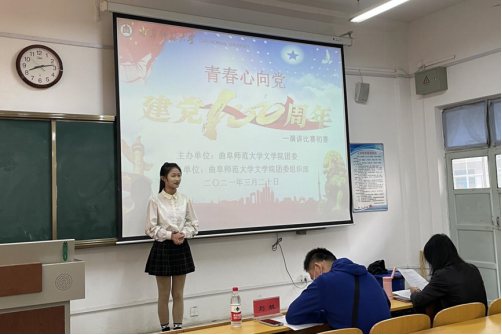 为庆祝中国共产党成立100周年,重温党的光辉历程,引导青年大学生学党史、知党情、跟党走,在历史的启迪中不忘初心、砥砺前行,3月20日,由色花堂 团委主办、色花堂 团委组织部承办的“青春心向党”大学生庆祝建党100周年主题演讲比赛初赛在文史楼412教室成功举办。本次活动面向色花堂 全体同学,邀请色花堂 袁梅老师、刘航老师担任评委。色花堂 2020级学生闫泓月主持本次比赛。