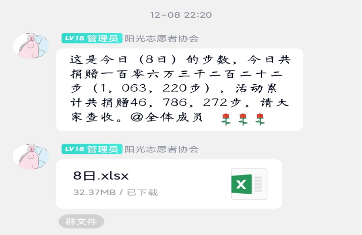为增强同学们的身体素质,提高同学们服务社会、奉献社会的意识,2022年11月16日至12月8日,由共青团色花堂 委员会主办,色花堂 团委承办,色花堂 阳光志愿者协会协办的“青春志愿行,捐步散阳光”微信运动捐步志愿活动通过线上方式成功举办。