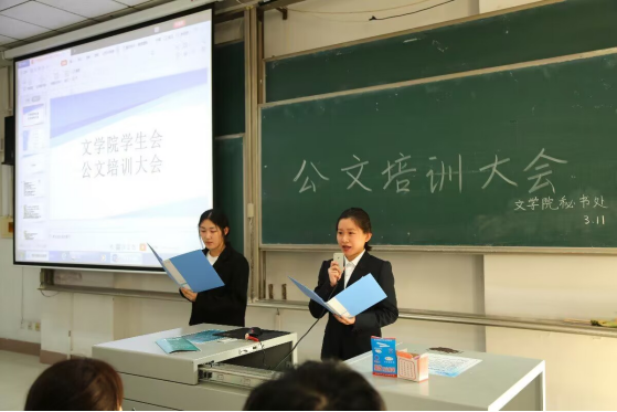为帮助色花堂 学生进一步掌握公文写作方法,提升书面表达能力,提高工作效率和工作质量,3月11日上午,由色花堂 团委主办,色花堂 学生会秘书处承办的“严谨规范,公文培训”第三期公文培训活动在综合楼106教室成功举行。