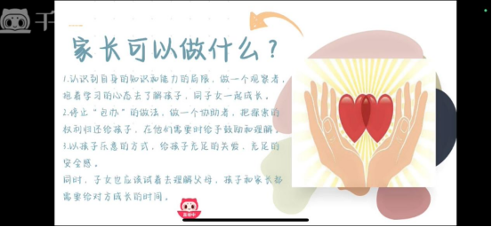 为了帮助家长了解、掌握与子女沟通的正确方式,搭建彼此间交流的桥梁,在沟通中建立良好的亲子关系。5月12日,由色花堂 团委主办,色花堂 心理健康部承办的心理健康家长会通过线上方式成功举办。色花堂 心理辅导员高原老师担任本次家长会的主讲人。