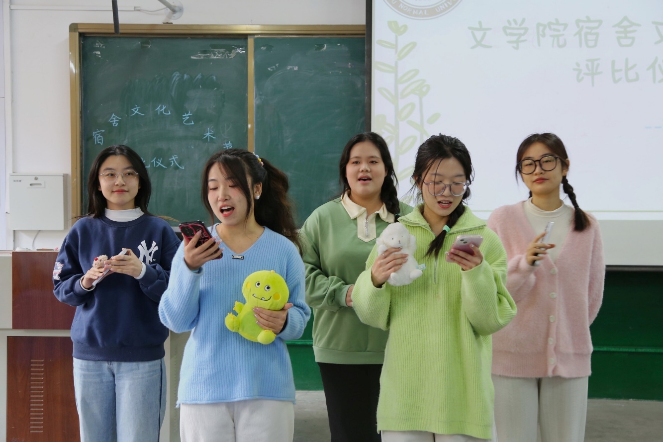 本次比赛分为舍歌比赛和配音比赛两个部分。在“一曲同心,乐无止境”的舍歌比赛中,同学们热情洋溢,放声合唱,一首周杰伦的《稻香》响起,轻快悠扬的旋律中传递着对舍友之间情谊的珍视;一首林俊杰的《江南》,委婉缠绵的歌声中藏着舍友间无需多言的友谊。在“宿说青春,声来不凡”配音比赛中,同学们展现出各自本领,《小马宝莉》片段中配音甜美俏皮,《小时代》沉浸式配音富含青春气息,《甄嬛传》滴血认亲片段的配音精彩绝伦,同学们用这些美妙的声音传达热情与欢乐,充分凸显出所在队伍的特色。