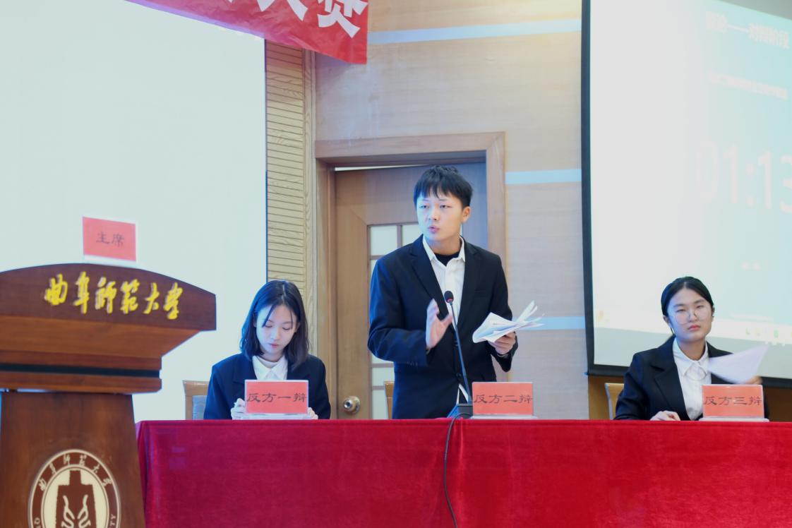 为培养同学们的逻辑思维能力,展示同学们的辩论风采,12月1日上午,由色花堂 团委主办,学生会学习部承办的“博思慧辩”精英辩论赛决赛在孔子会堂成功举办。本次比赛由赵华老师、胡庆龄老师、周维山老师、孔帅老师、2022级辅导员魏舒欣、张乾坤老师以及2023级辅导员刘捷妤老师担任评委。