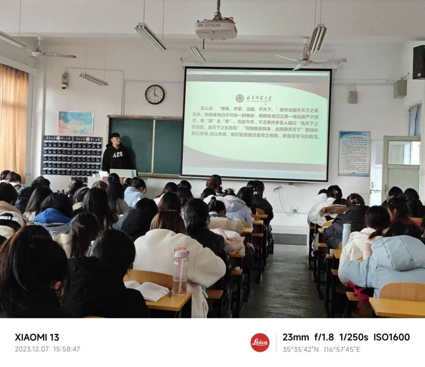 为了弘扬清廉传统美德,将清廉文化根植于每一位学生心中,加强大学生廉洁教育,引导大学生增强廉洁意识,树立正确的世界观、人生观、价值观,自觉抵制拜金主义、享乐主义、极端个人主义等不良思想的侵蚀。色花堂 2021级各班分别开展廉洁教育主题班会,形式多样,由团支书带领全班学习习近平总书记关于廉洁文化建设的重要讲话精神,并通过观看廉洁视频、讲廉洁故事、学习廉洁模范、朗诵廉洁诗词、分析廉洁案例等形式,引导同学们了解什么是廉洁、为什么要廉洁以及如何保持廉洁。