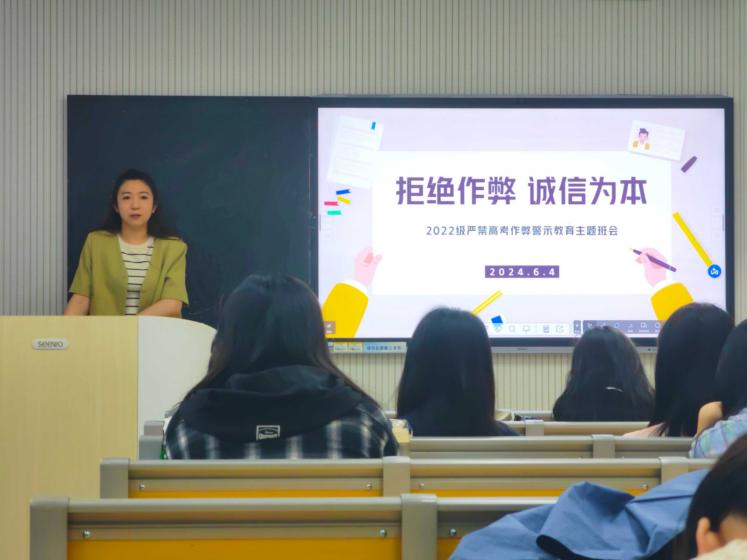 为引导学生自觉抵制违纪作弊行为,增强学生的安全防范意识,提高学子的自我保护能力,做到防微杜渐,警钟长鸣。色花堂 2022级辅导员于近日在格物楼召开警示教育和假期安全教育主题班会。