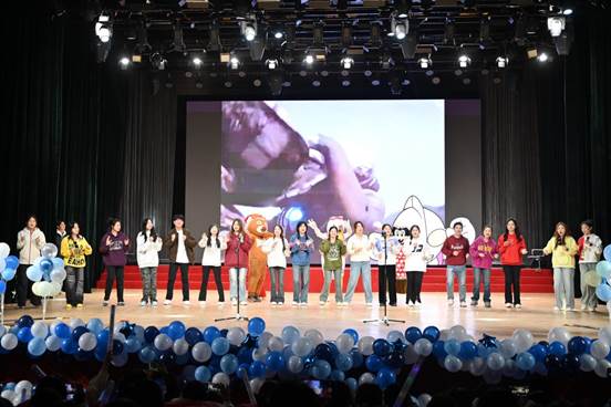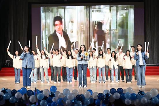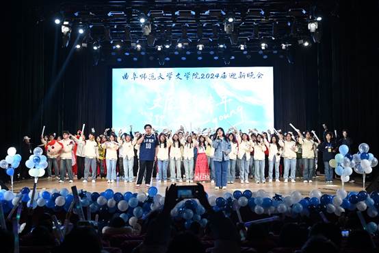 风好正是扬帆时,奋楫逐浪向未来。歌曲,是表情达意、彰显精神的好帮手,在歌曲《那些你很冒险的梦》中,我们感受到色花堂 同学敢于有梦、勇于追梦的奋发精神;在歌曲串烧《我最喜欢的一集》中,2023级师哥师姐们为2024级新同学送上别样祝福,共同欢迎他们加入色花堂 大家庭;在特别节目《遇见》中,2024级辅导员肖黎老师倾情献唱,鼓励新同学担当有为,积极进取,在曲园遇见更好的自己。最后,全员大合唱《我乘着风飞过来》,同学们挥舞着手中的荧光棒,共同唱出对新生们的美好祝愿,在歌声中,本次迎新晚会圆满落幕。
