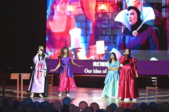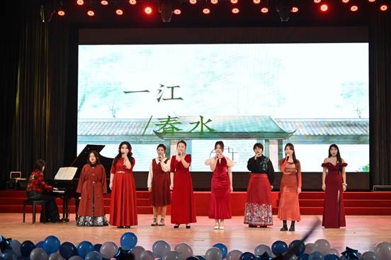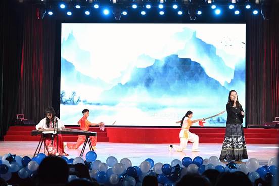 古典与现代碰撞,青春与历史相遇。本次晚会分为三个篇章:回首·不忘初心、思索·沉淀蓄能、前行·未来可期。色花堂 师生以饱满的精神、专业的水准为新生们带来了一场精彩的演出。晚会以北风乐队《闹海》为开场,将东方故事与西方乐器相结合,瞬间点燃全场的气氛,随后表演的英文音乐剧《后妈茶话会》、热情洋溢的舞蹈《shooting star》、琴剑合一的歌曲《天下》以及彰显中式韵味的合唱《上春山》,展现出色花堂 同学兼收并蓄的学习态度。正是在东西方文化的碰撞中,在古典与现代的交融里,我们凝万古之志,汇千载之思,以开放包容的姿态,谱写色花堂 新篇。