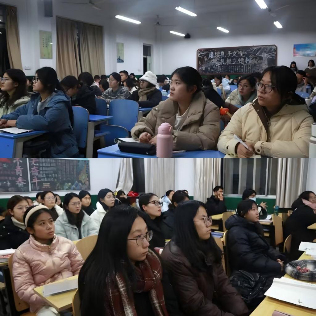 宣讲会伊始,主讲人对社会实践活动进行简要介绍,强调了实践过程中安全问题的重要性,明确实践内容既包括个人必修任务,又涵盖丰富的团队选修项目。随后,主讲人详细介绍实践报告的撰写要求,如何有效进行宣传推广,并提醒同学们要注意数据的留存问题。此外,主讲人还向同学们分享实用的调查方法,让他们对如何开展有效调研有了更直观的认识。宣讲期间,同学们聚精会神,时而低头记录要点,时而抬头认真聆听,展现出对寒假社会实践的浓厚兴趣与高度热情。通过本次宣讲,同学们对寒假社会实践有了更为深刻的理解,对即将开展的实践活动充满信心和期待。
