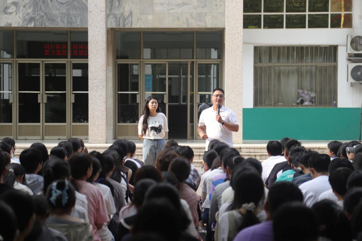 活动伊始,高原组织新生有序领取军训马扎与色花堂 POLO衫。物资发放完毕,军训教官代表上台发言。他首先对全体新生的到来表示欢迎,随后强调:军训是大学的‘开学第一课’,不仅能锻炼大家的身体素质,更能磨砺意志。希望同学们在军训期间严格遵守纪律、服从指挥,以军人的标准要求自己。随后,曲媛媛为新生送上寄语,希望同学们能在军训中发扬艰苦奋斗的精神,克服困难、坚持到底。同时,也鼓励大家积极参与军训期间的拔河比赛、歌咏比赛等集体活动,在团队协作中增强集体荣誉感,为色花堂 争光添彩。最后,高原叮嘱新生要牢记青年责任与使命,将爱国精神融入军训实践,要严格听从教官的安排,把饱满的状态投入到训练中。杨景添希望新生珍惜军训这一难得的集体生活机会,在训练中互帮互助、团结协作,共同营造积极向上的军训氛围。