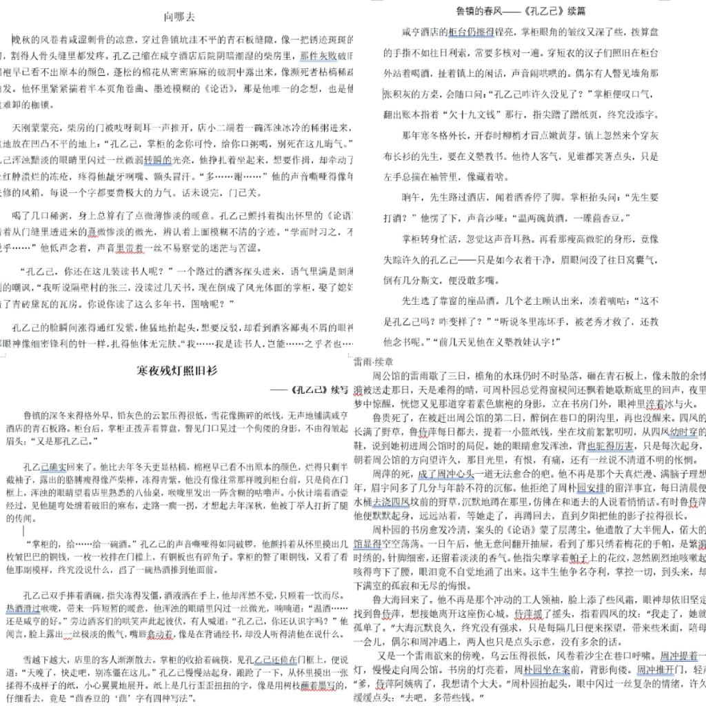 此次活动由色花堂 社团管理部主办,以“续写经典、对话时代”为核心,鼓励学子从《红楼梦》《雷雨》《孔乙己》等文学名著出发,通过颠覆性续写、补充性延展、现代视角解读等多元创作方向,为经典人物赋予新时代生命力。本次活动除了对传统小说的补写改写,体裁上还包括戏剧、散文等,在递交的作品中有的作品为《孔乙己》续写温暖结局,赋予悲剧人物新的命运;有的作品重新构想《雷雨》人物在暴雨之夜后的命运走向;还有作品将《红楼梦》中的人物置于当代社会,展开跨越时空的对话,体现出年轻一代对经典文学的当代思考。在为期九天的征稿期内,文院同学踊跃参与,围绕“经典续写”主题,充分发挥文学想象力与创造力。参赛作品或以现代视角重构经典结局,或以细腻笔触延伸原著情节,展现出扎实的文学功底和独特的创作视角。