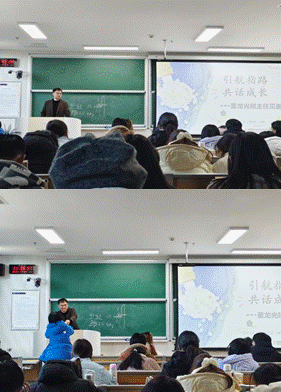 11月27日,汉语言文学(师范)6、7班班主任董龙光召开了师生见面会。老师结合自身求学和教学经历,指导同学们要趁早规划前路,笃定心中方向,不抛弃不放弃,向着目标勇往直前。同时,董老师细心地关注大家的身体和心理健康,鼓励同学们锻炼身体、高效学习,有利于帮助学生们适应大学生活,促进个人成长。