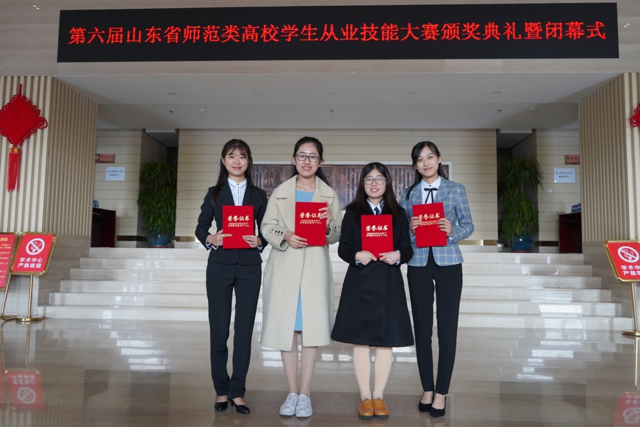 第六届山东省师范类高校学生从业技能大赛,2018年10月19日—21日在鲁东大学举行。师范类高校学生从业技能大赛,是检验省内各高校师范专业学生从师技能及水平的重要平台。大赛能够起到更新教师教育理念、重视师范生综合素质养成、强化从教基本技能、增强其就业竞争力的作用。本次大赛由山东省教育厅主办、鲁东大学承办。另外,我院推荐参加学校从师技能大赛的沈英裙、高永潇和王硕3位同学,均荣获学校一等奖。