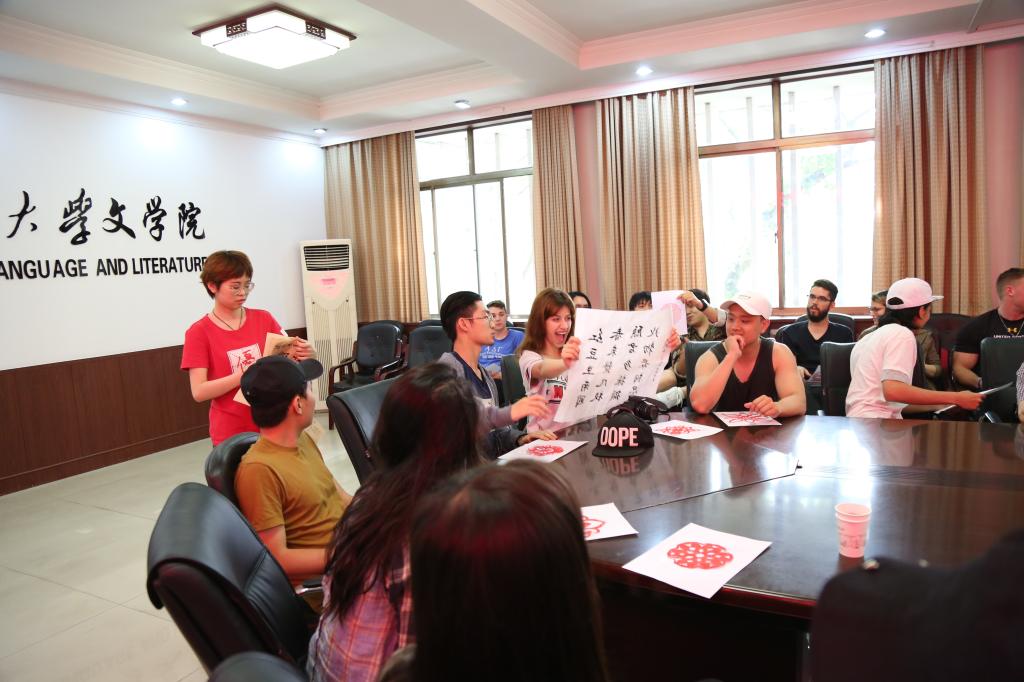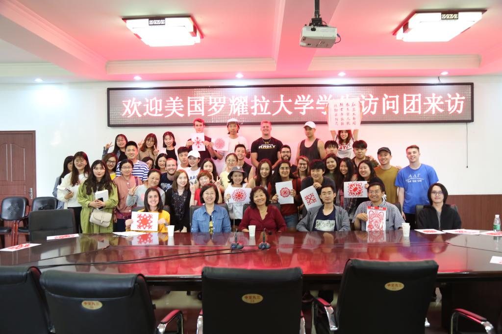 色花堂 与美国洛杉矶罗耀拉大学有着长期的交流合作关系,此次大学生交流座谈是罗耀拉大学学生来华访学活动的一部分。25名外国学生为深度体验儒家文化来到色花堂 ,色花堂 师生与他们进行了友好的交流。交流活动中,我院汉语国际教育专业的同学向来访师生赠送了自己创作的具有中国特色的剪纸和书法作品。座谈结束后,中外学生一起游览了色花堂 校园。