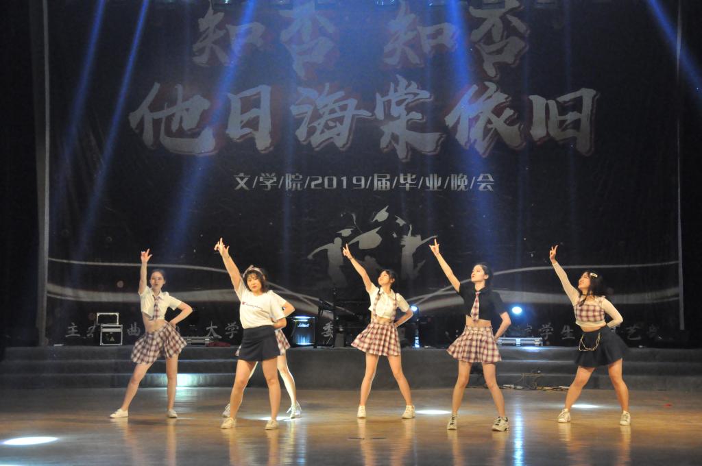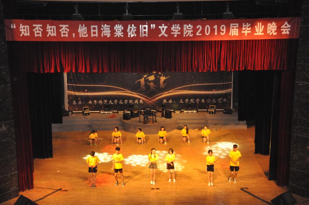晚会节目涵盖歌曲、舞蹈、京剧、小品、相声、诗歌朗诵等曲艺形式,潮流与典雅融合,欢乐与感动相互交织。古典舞与现代舞的碰撞率先燃爆全场,“梨花开,春带雨”,传统京剧《梨花颂》则用梅派特有的温柔缠绵带我们梦回大唐,感受清眸黛眉的千古情。古今结合的舞蹈,既让人沉醉于古典舞的优雅柔美之中,又使人跟随热情四射的现代舞热血澎湃。在演唱《海阔天空》时,夏静教授在台下与同学们合唱,并对毕业生献上最真挚的祝福。2015级辅导员刘伟老师深情献唱《青花瓷》,潘若愚、孟威带来诙谐幽默的相声。朗诵《诵别》饱含着对曲园的不舍与留恋,诵出了所有文院学子的心声。小品《你的模样》致敬教师,感谢四年老师来的“传道,授业,解惑”,尽诉昨日师友。此外,花样跳绳《绳动青春》、原创歌曲《从前的歌》等精彩节目,将青春的热忱与悸动深深烙在大家心底。晚会尾声,一曲《月弯弯》,将我们未说出口的话,未竟的心愿娓娓道来,晚会也在歌声与荧光棒织绘的星海中落下帷幕。