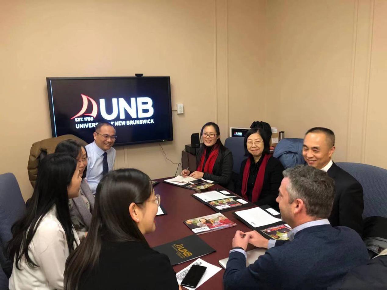 在参加理事会期间,代表团还访问了新布伦瑞克大学。分管国际化的副校长鲁瓦德·汉德森(Lloyd Henderson)、国际处处长克里斯·比尔兹沃斯(Chris Beardsworth)以及我校优秀毕业生、曾在新省孔院任教、现为新布伦瑞克大学国际处项目官员的蒋洁(蒋洁是我院语言学及应用语言学专业学生,曾在新不伦瑞克省孔院做志愿者,现在新不伦瑞克大学国际处任职。)热情接待了代表团一行,他们介绍了新布伦瑞克大学及其国际化教育发展情况。宾主双方就两校的学生互派、教师互访以及共同开展科研合作等事宜进行了探讨,并达成共识。