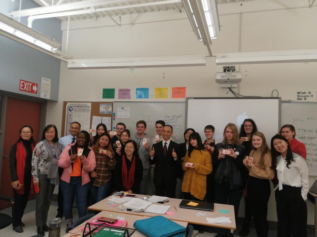 在加期间,代表团观摩了我校派出的汉语教师志愿者陈俊锋(陈俊锋是我院2014级汉硕学生,曾任新不伦瑞克省孔院志愿者;现转为公派汉语教师)的中文课堂,看望了我校在孔子学院任教的公派教师和学生志愿者,了解他们的生活和工作状况,鼓励他们努力工作,圆满完成学校交给他们的光荣任务,不辜负学生和家长对他们的殷切期望。另外,代表团还应邀参加了由加皇国际教育集团董事长、新省孔院理事会主席彭建华(Francis Pang)先生为约翰·麦克劳林(John McLaughlin)副部长组织的退休恳谈会,参加恳谈会的有新省原省长、现任教育部副部长助理、大西洋国际教育集团副总裁等有关人员,代表团向与会人员介绍了我校情况。