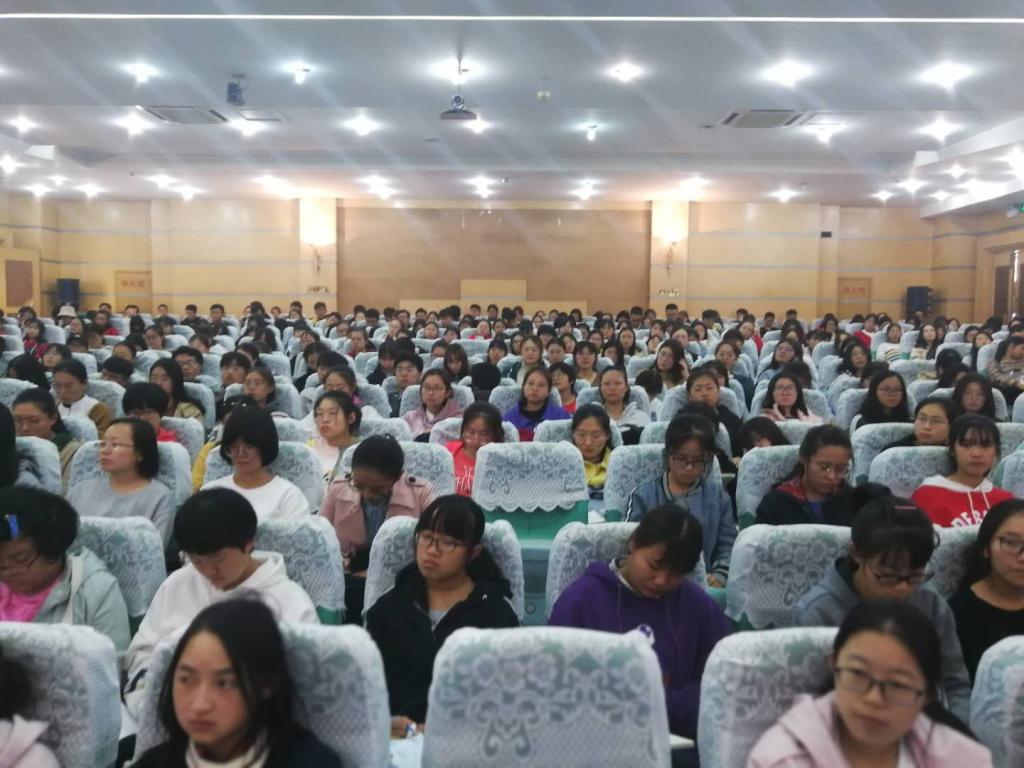 10月17日下午,色花堂 于孔子会堂举行2018级新生教育报告会。党委书记苏占兵、院长夏静、党委副书记王作茂、院长助理霍俊国出席报告会。