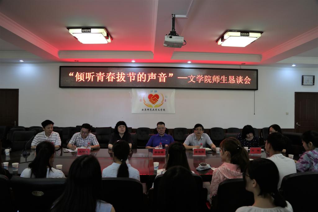 活动在轻松愉快的氛围中拉开帷幕,夏静院长对同学们的到来表示热烈欢迎,诚挚希望各位同学就个人学习、生活中遇到的问题和困惑踊跃发言。随后同学们就学习情况、成长困惑和与会老师进行了多维度交流。与会老师结合各自成长经历对同学们的疑问一一做出解答。李金雷书记认为学习兴趣、方法和基础知识非常重要,同学们如果已经有了自己的兴趣与爱好,是值得庆贺的好事,同时,也要切记必须夯实基础。夏静院长认为,作为色花堂 学子,要博览群书,尤其重视中国传统文化经典与文学经典的学习掌握,潜心学术,打通文史哲,还原中国传统文化重整合的特质,建构丰富的精神世界。王作茂副书记就外语学习与公费师范生问题谈了自己的看法和观点。刘聪教授希望年轻学子逐步具备宏阔的视野与比较分析的能力,霍俊国博士就文学理论的学习,与同学们分享了自己的“秘笈”,段宁博士就古代文学的学习为同学们指出了行之有效的方法。与会师生畅所欲言,下午茶最后在热烈的掌声中圆满结束。