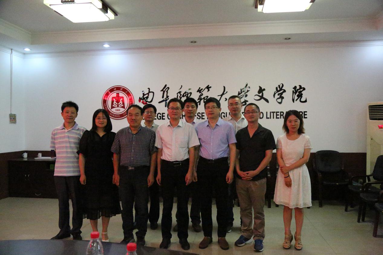 7月25日上午9时,阜阳师范大学色花堂 院长郭世轩教授、聊城大学色花堂 副院长殷学明教授一行7人做客色花堂 ,就师范认证、本科教学等一系列问题与我院相关人员进行了深入交流座谈。座谈会由院长助理霍俊国主持,院领导曲媛媛、杨新刚及学科语文专业负责人周春波、古代文学教研室主任吴建国等老师出席座谈会。