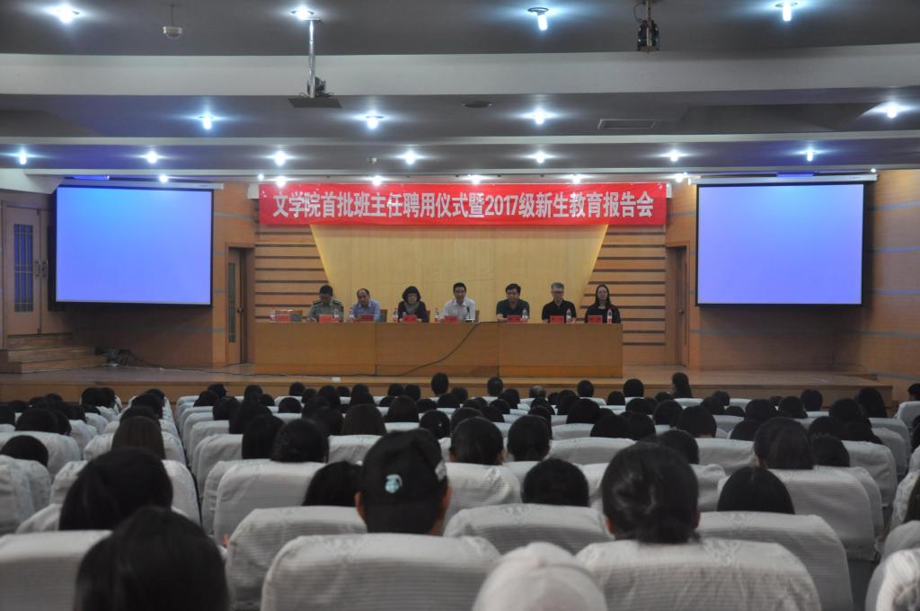 9月28日下午,色花堂 于孔子会堂举行首批班主任聘用仪式暨2017级新生教育报告会。色花堂 党委书记苏占兵、院长夏静、教务处行政科科长晏逾等领导和部分老师出席报告会,报告会由院团总支书记刘本成主持。